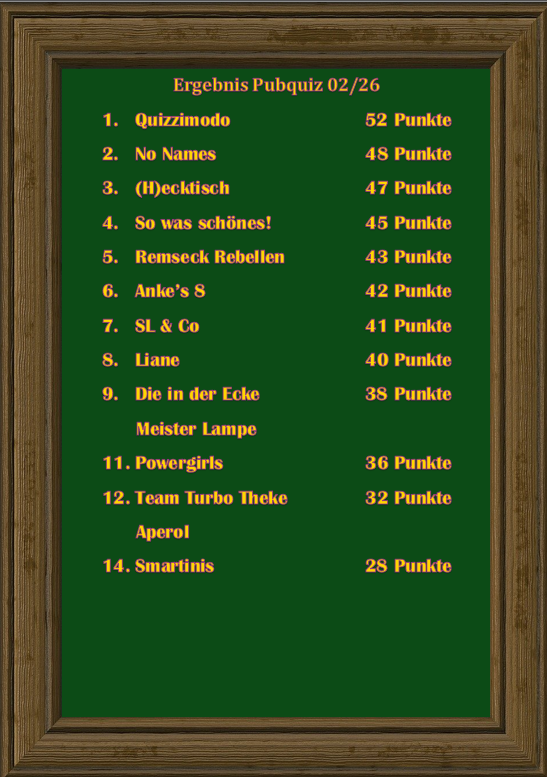 Hier alle Termine der Pubquizsaison 2025 - 2026